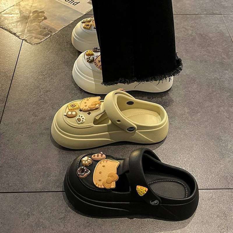 2025年夏厚底クロックスレディース身長アップアウターウェア韓国風滑り止めつま先ツーウェアサンダルとスリッパ超ソフト