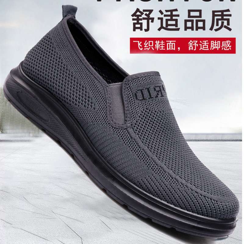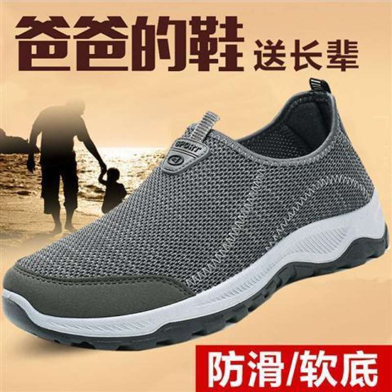 夏の古い北布靴メンズ通気性のあるお父さん靴メッシュフライ織りカジュアル中高年ソフトソール滑り止め高齢者靴