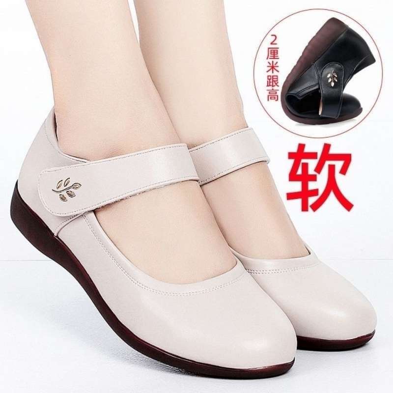 本物の柔らかい革の靴、母親の靴、秋の新しい中年女性の革靴、滑り止めウェッジヒール、柔らかい底、カジュアルで快適な作業靴