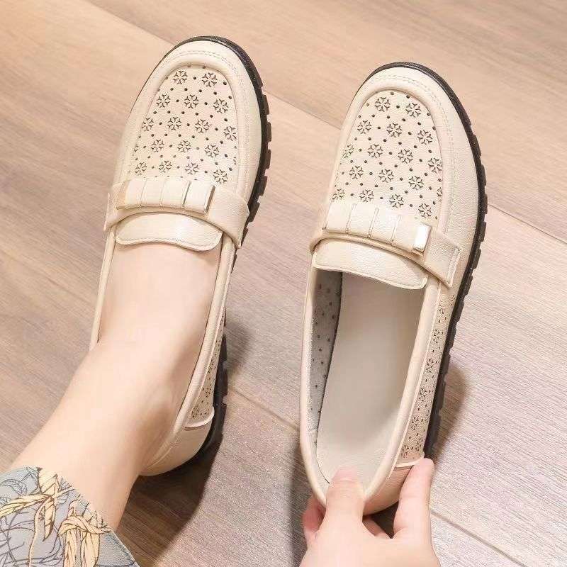 ママの靴、中年サンダル、夏用ソフトソール、中高年女性の革靴、快適で通気性のあるシングルシューズ、柔らかい革のつま先の下駄