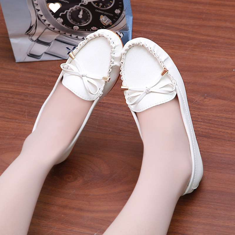 春と秋の新作女性用平底白靴、女性用蝶結び豆靴、ナースシューズ、作業靴、妊婦用マザーズシューズ