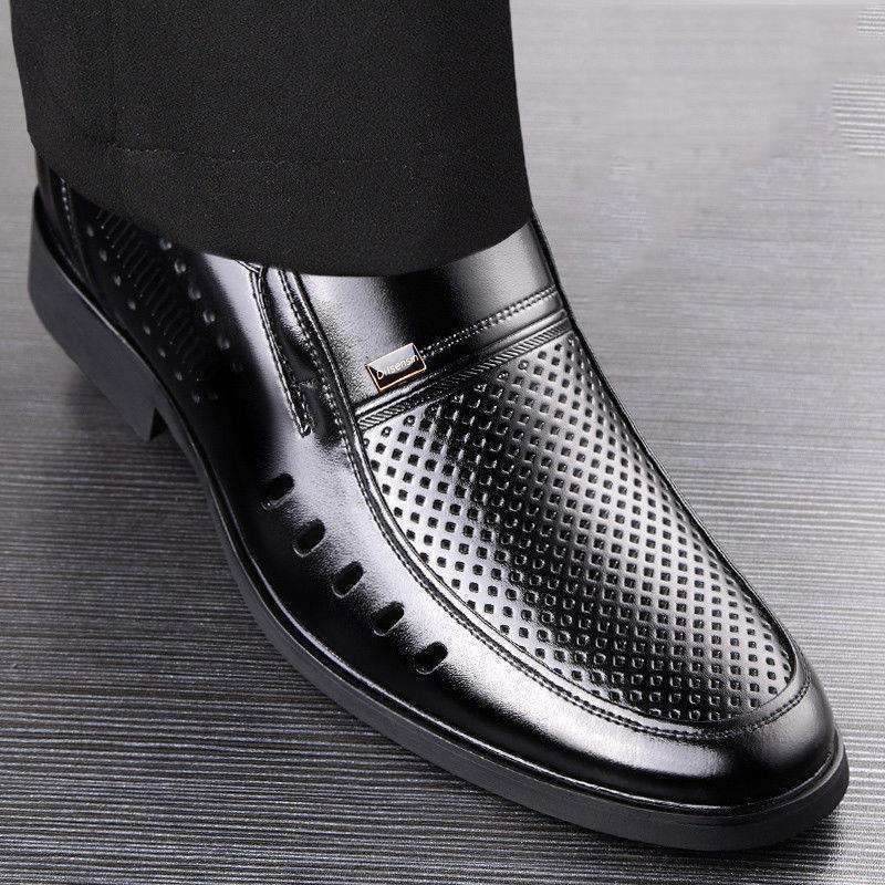 新しいメンズシューズ夏通気性消臭大型ビーニーシューズスリッポンカジュアルソフト表面中空革靴