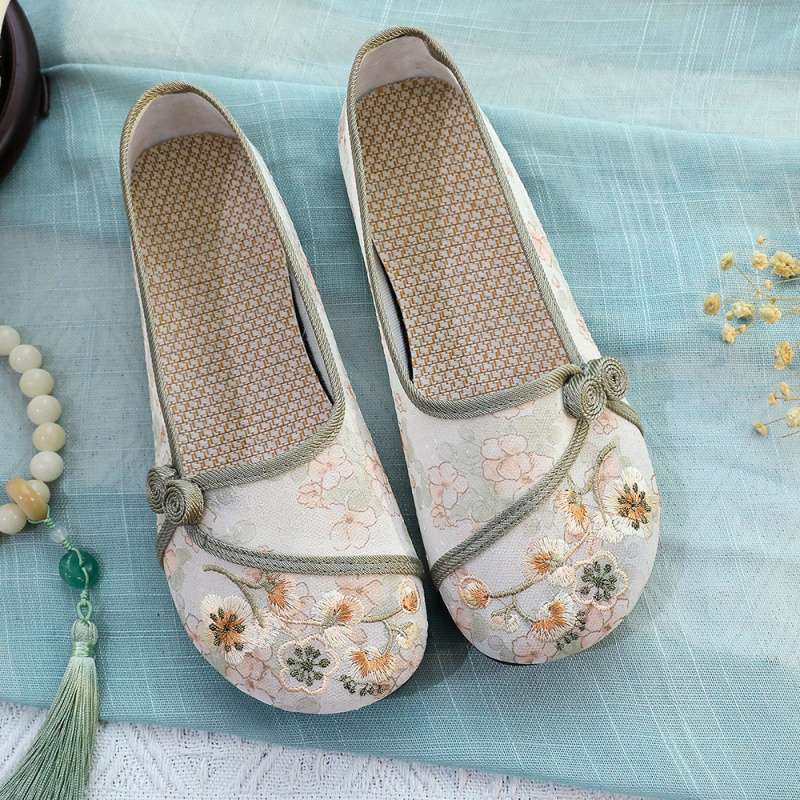 スリッポンエスニックスタイル通気性レトロレディーススリッパカジュアルオールドノース布靴高齢者布靴刺繍入り女性