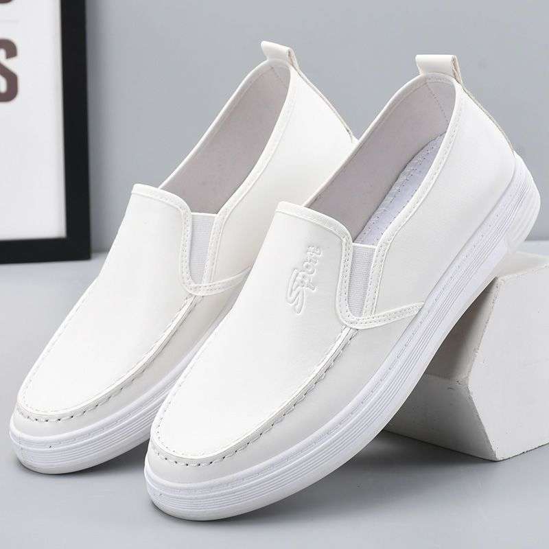 メンズカジュアルレザーシューズ防水滑り止めソフトソール作業靴韓国風多用途フラットホワイトレザーシューズスリッポンスニーカー