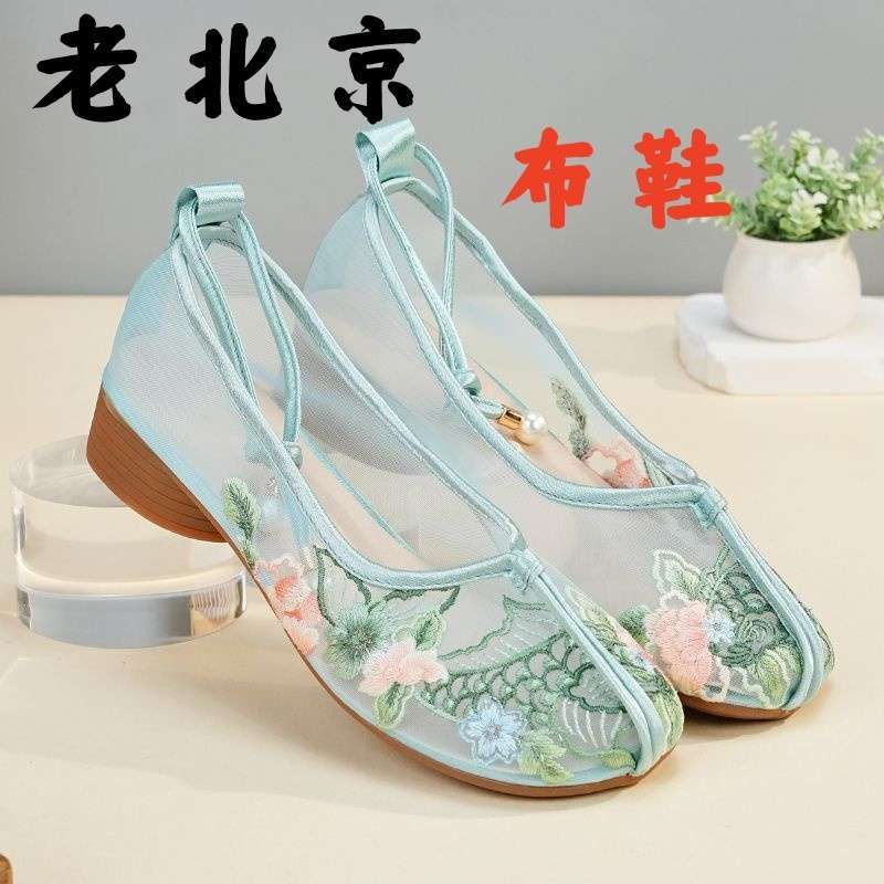 2025 夏の新スタイルの女性のための古い北布靴メッシュ薄型通気性ママの靴ソフトソール滑り止め漢服刺繍靴