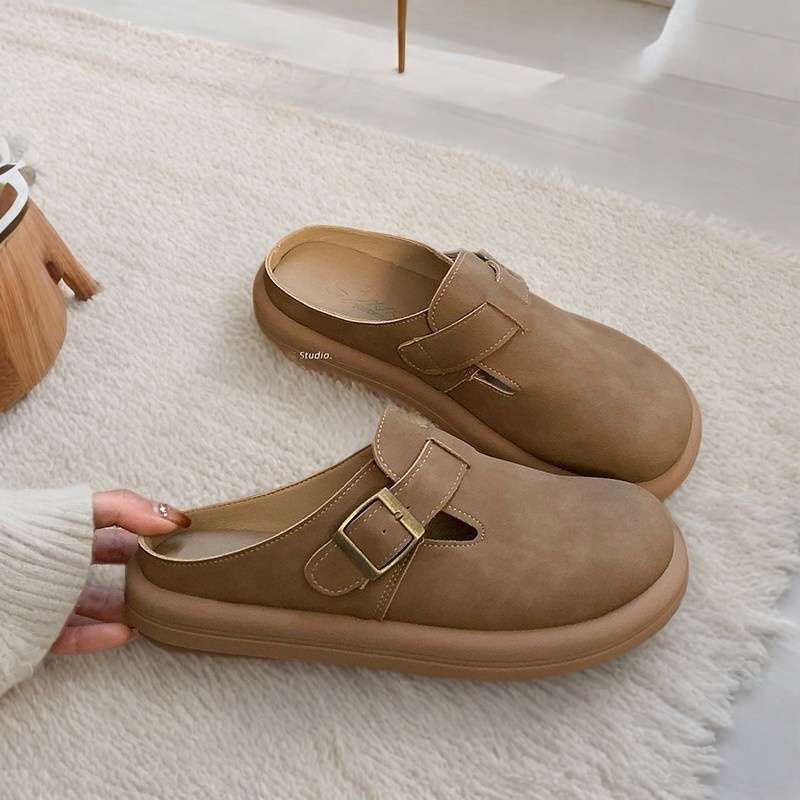 女性が屋内外で履くためのビルケンシュトックつま先スリッパ、2025年春夏新作レトロスリッポン妊婦サンダル