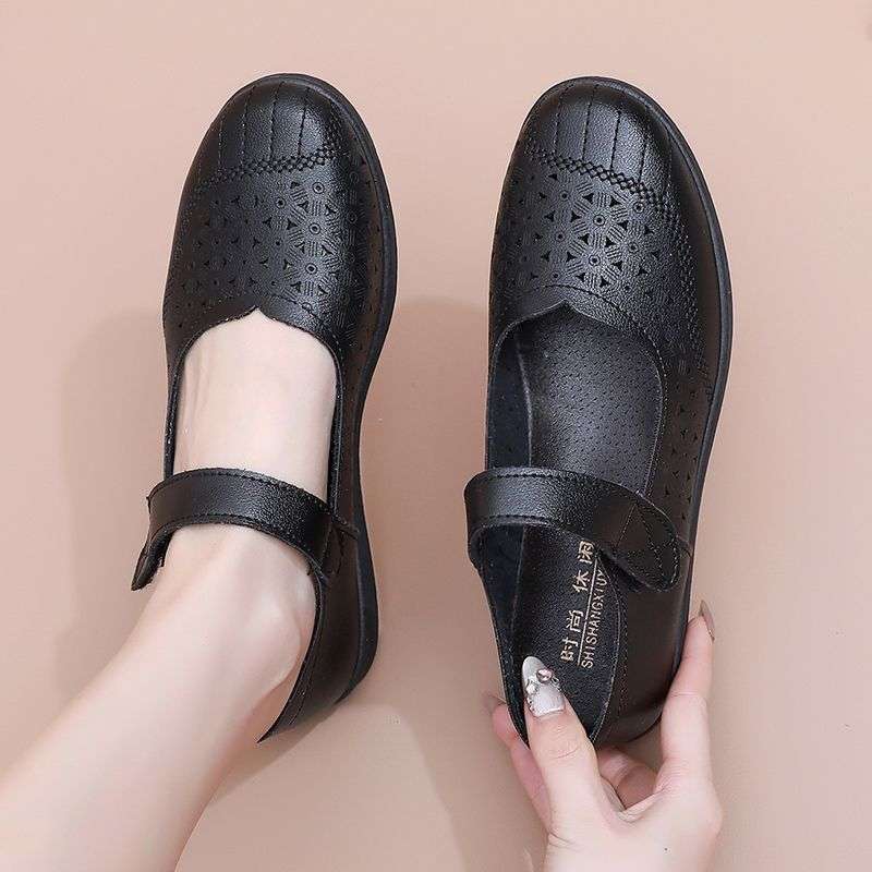 柔らかい底のマザーズシューズ、女性用包頭サンダル、滑り止めシングルシューズ、中高年中空穴靴、高齢者革靴、秋
