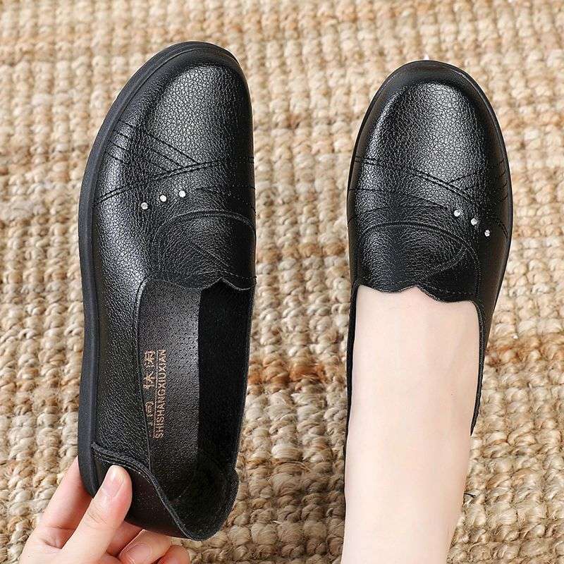 本物の柔らかい革のマザーズシューズ、女性用の牛筋ソフトソールシューズ、中高年向けのフラットソールのスリッポンシューズ、長時間立っても疲れにくい靴