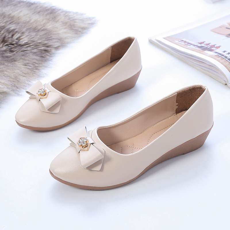 女性用ウェッジヒールビーニーシューズ 2025 春の新作ソフトソール滑り止めマザーズシューズ浅い口多用途インナー高さ増加靴レディースシューズ