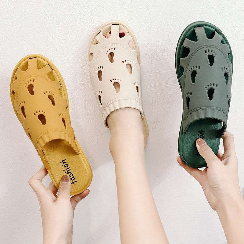 女性用包頭スリッパ、ファッショナブルな中空ハーフスリッパ、フラットヒール、滑り止め、柔らかい底の下駄、ビーチサンダル、夏用スリッパ