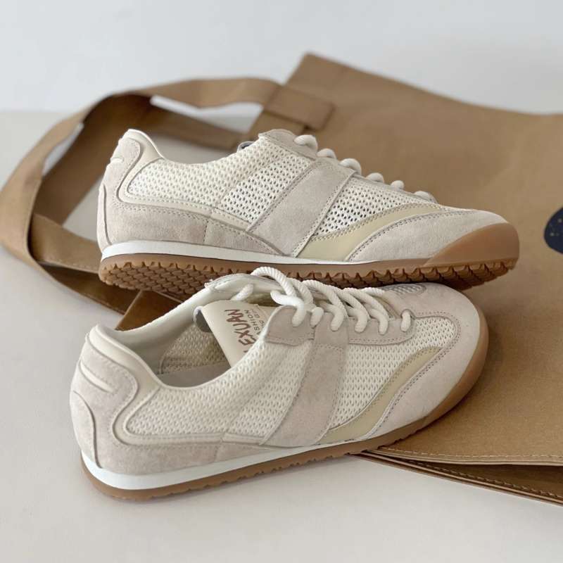 春のソフトソールレトロ道徳トレーニングシューズ婦人靴 2025 新しいメッシュ通気性カジュアル醜いかわいいフラットシューズ白靴