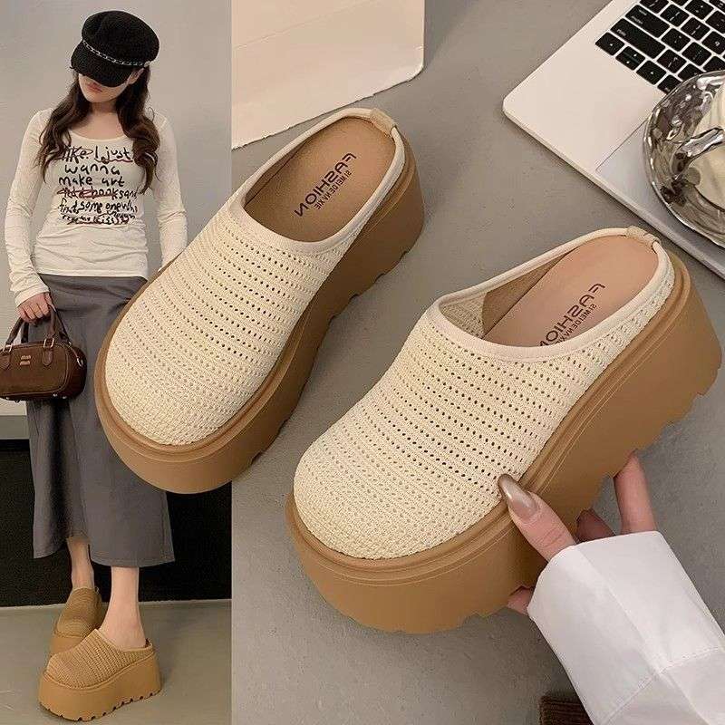 ボヘミアンソフト厚底ホリデービルケンシュトックシューズレディースアウターニッチ春夏スリッポン織りつま先ハーフスリッポンシューズ
