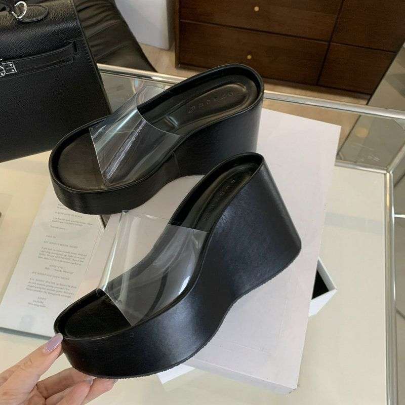 女性用透明ウェッジスリッパ、2025年夏人気の小柄な厚底スリムフェアリースタイルスリッパ