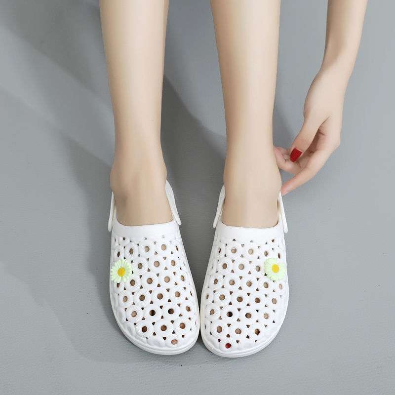 夏の女性のサンダル下駄新しいファッション菊包頭女性の靴ノンスリップソフト底ビーチ韓国スタイル中空靴