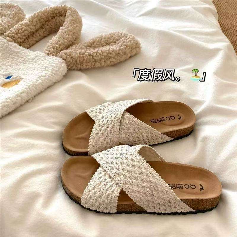 女性用編み込みレイジーワンラインビルケンシュトックサンダル2025春夏通気性ソフト滑り止め厚底ビーチスリッパ