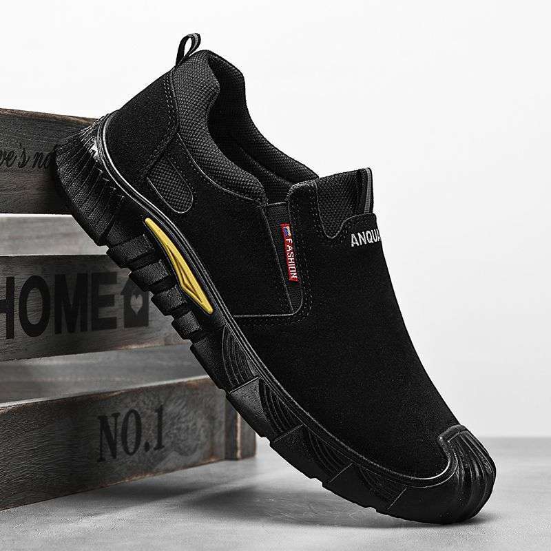 2025 秋の新通気性ロートップ鋼つま先なし労働保護靴メンズスリッポン耐摩耗性と汚れにくい作業靴ソフトソールシューズ