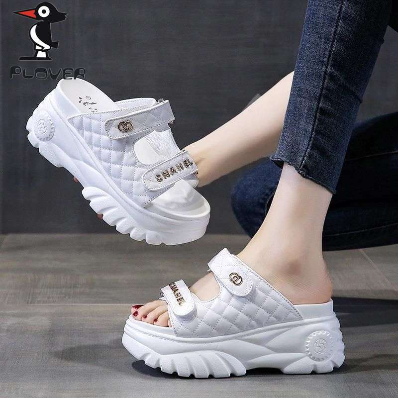 PLOVER レディースサンダル、おしゃれなインファッション2025夏新作厚底インナー高さ増加プラットフォームスリッパ