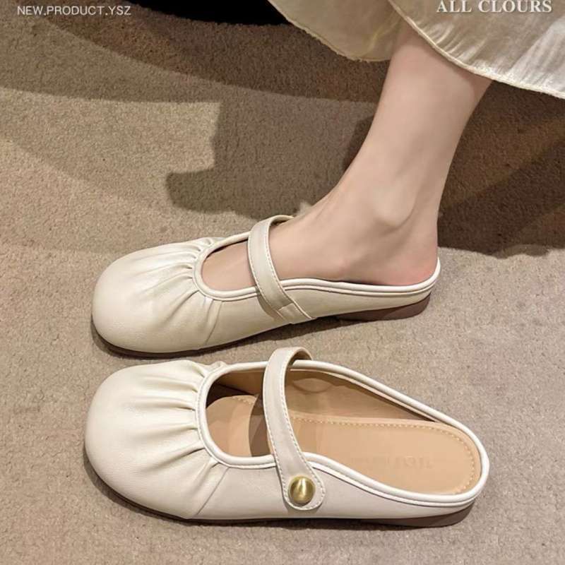 夏に外で履く女性用フレンチトゥハーフスリッパ 2025年新作スカートやサンダルと一緒に履く女性用ソフトフラットハーフスリッパ