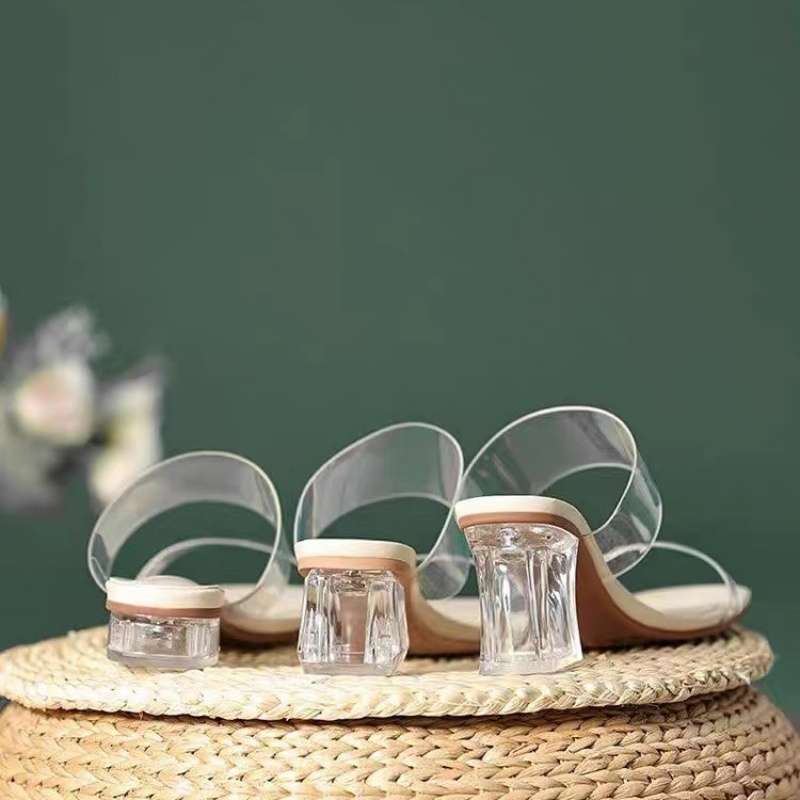 2025 新しい女性のスリッパ透明ストラップハイヒール厚いヒールサンダル妖精スタイルアウターウェアクリスタルヒールファッション靴