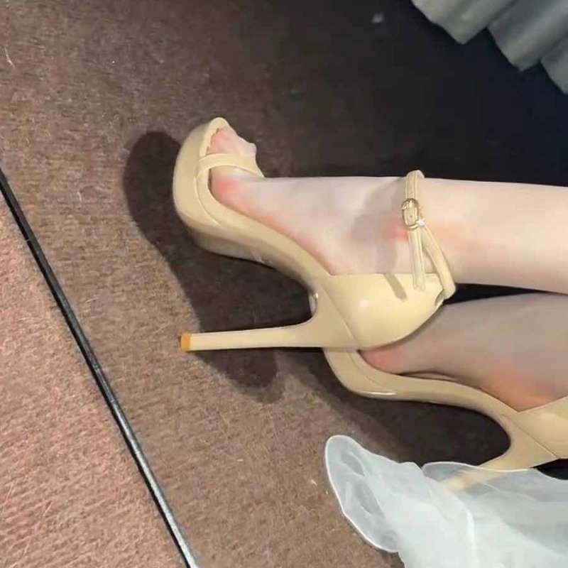 ハイヒール 2025 新しい夏防水プラットフォームシルバースティレットヒール 10 センチメートルセクシーな黒のサンダル女性のアウターウェア
