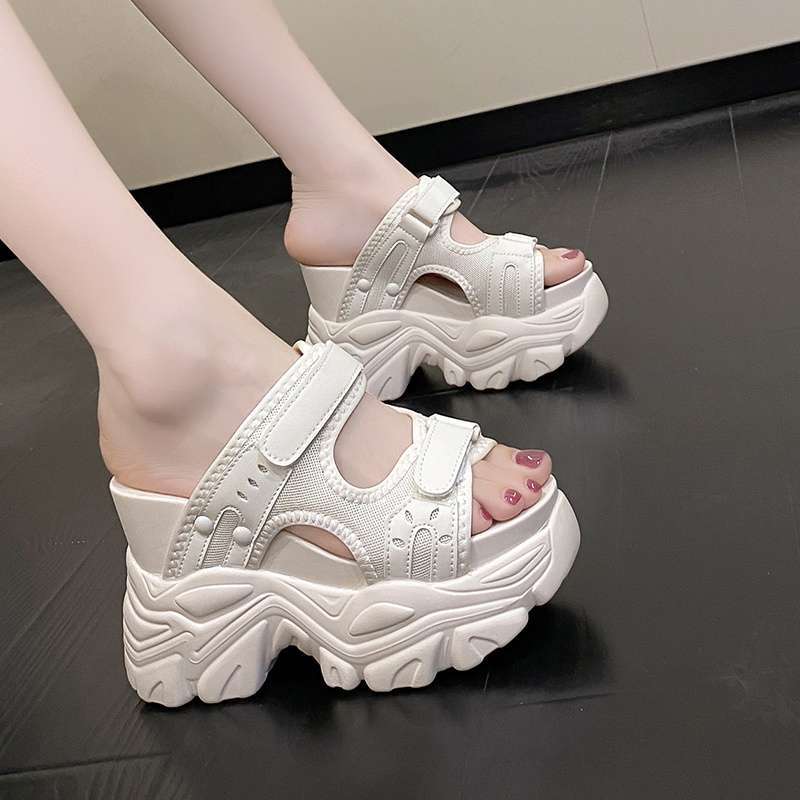 2025 新韓国スタイル夏多用途レトロワンライン防水プラットフォーム厚いヒールローマサンダル女性のハイヒール
