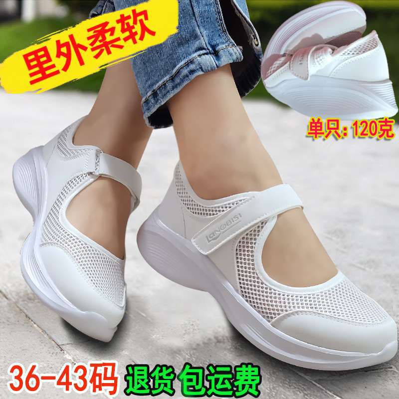 夏白ナース婦人靴通気性高齢者と若者ソフトソールフィットネスノンスリップカジュアルメッシュ中空サンダル