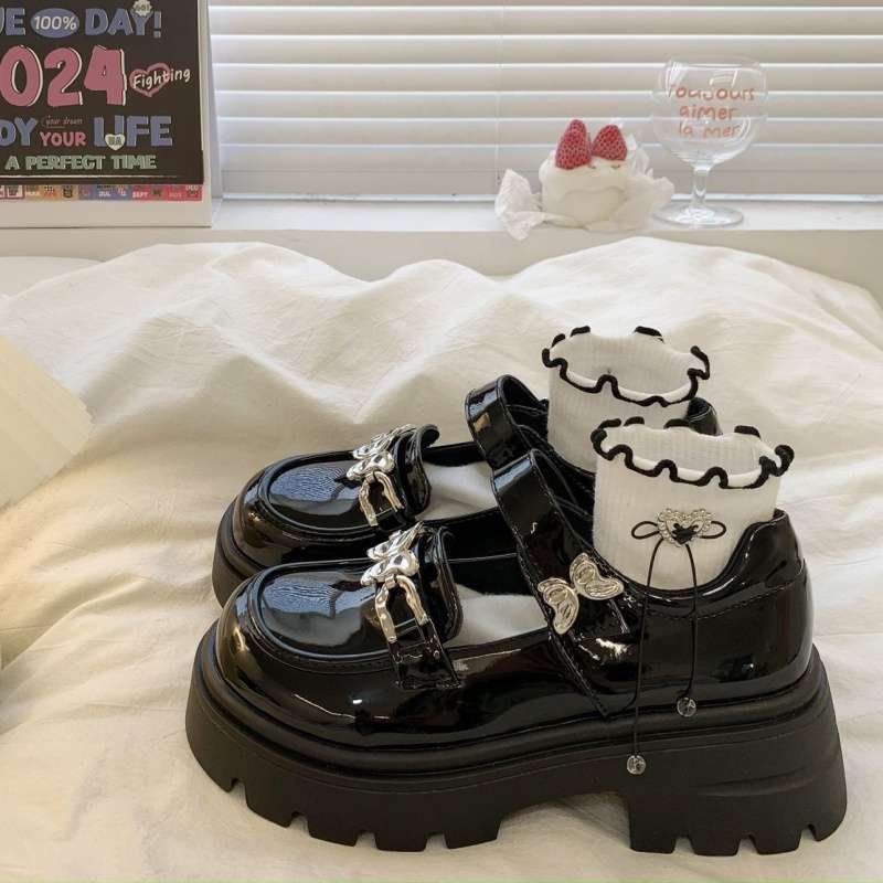 黒の厚底プラットフォーム高さ増加小さな革靴女性のための 2025 新作春レトロ英国スタイルラウンドトゥメリージェーンシューズ