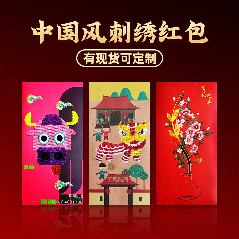 スポット2021赤包袋生肖創意高級刺繍紅包新年赤包袋箔押し生肖紅包