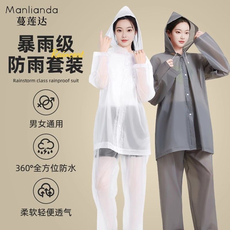 スプリットレインコートとレインパンツセット全身防雨レインコート女性と男性の厚みのある防水フード付き非使い捨てレインポンチョ