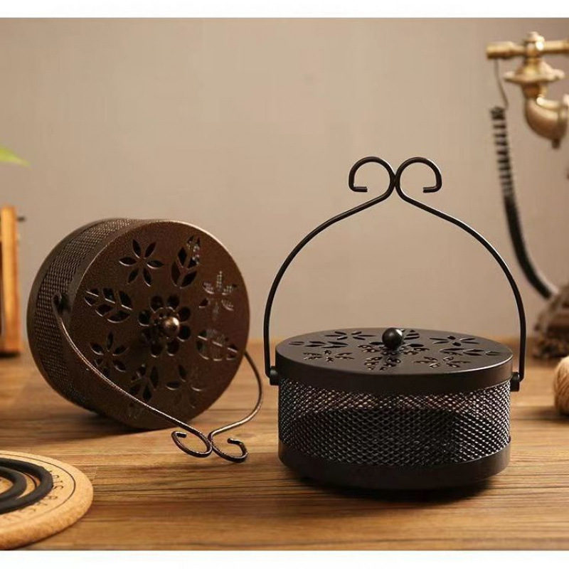蚊よけ線香ボックス、鉄製蚊よけ線香炉、白檀線香、屋内吊り下げ式家庭用蚊よけ線香トレイホルダー、金属吊り下げ式