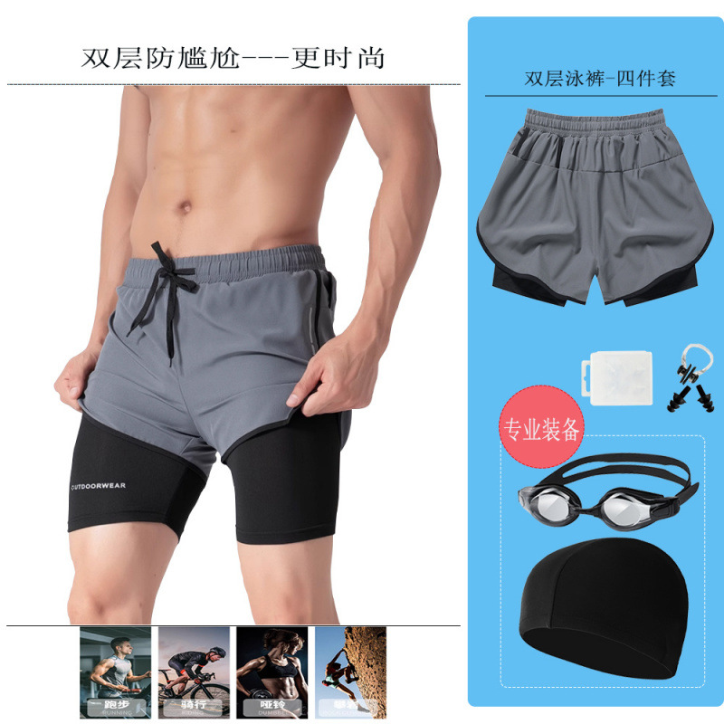 メンズ水泳パンツ ゆったり 恥ずかしくない 速乾 温泉 ホテル 5点式水泳パンツ ショーツ ビーチパンツ セット