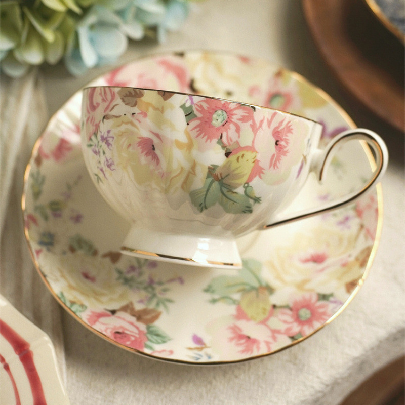 フレンチローズコーヒーカップとソーサーセットニッチ絶妙なラテアフタヌーンティーボーンチャイナエレガントで豪華な家庭用