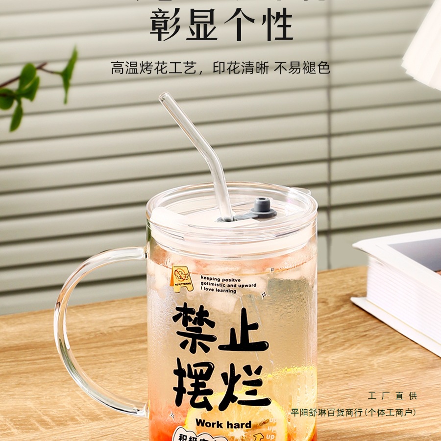 1l 大容量ウォーターカップティーカップ高ホウケイ酸ストローカップガラスカップ飲料水女性オフィスティーカップ蓋付き