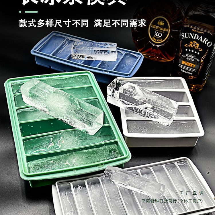 シリコーン製氷皿ロング大型アイスキューブ型アイスボックス商業ウイスキークリエイティブフードサプリメントボックス蓋付き家庭用正方形