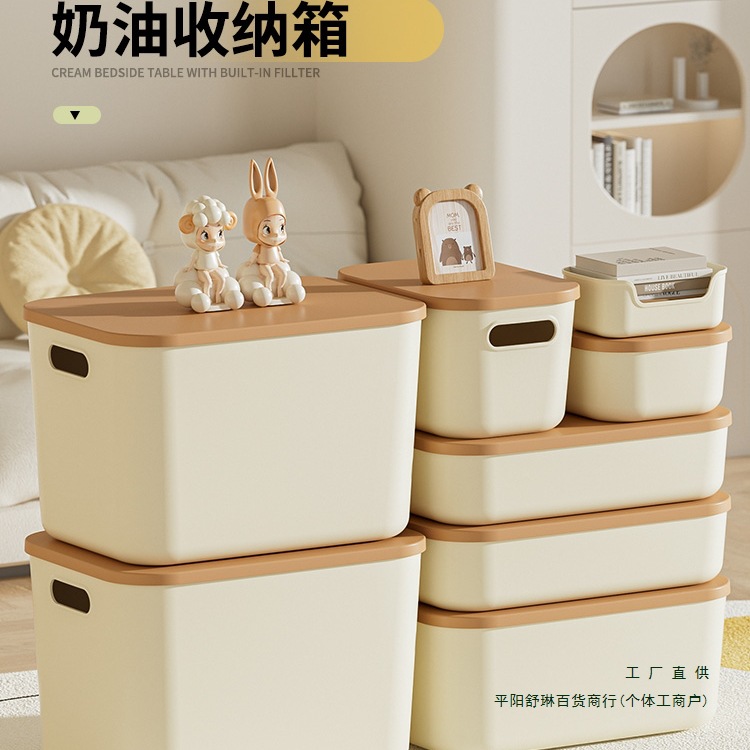 デスクトップ収納ボックス クリームスタイル リビングルーム スナック おもちゃ 化粧品収納バスケット キッチン雑貨 蓋付き収納ボックス