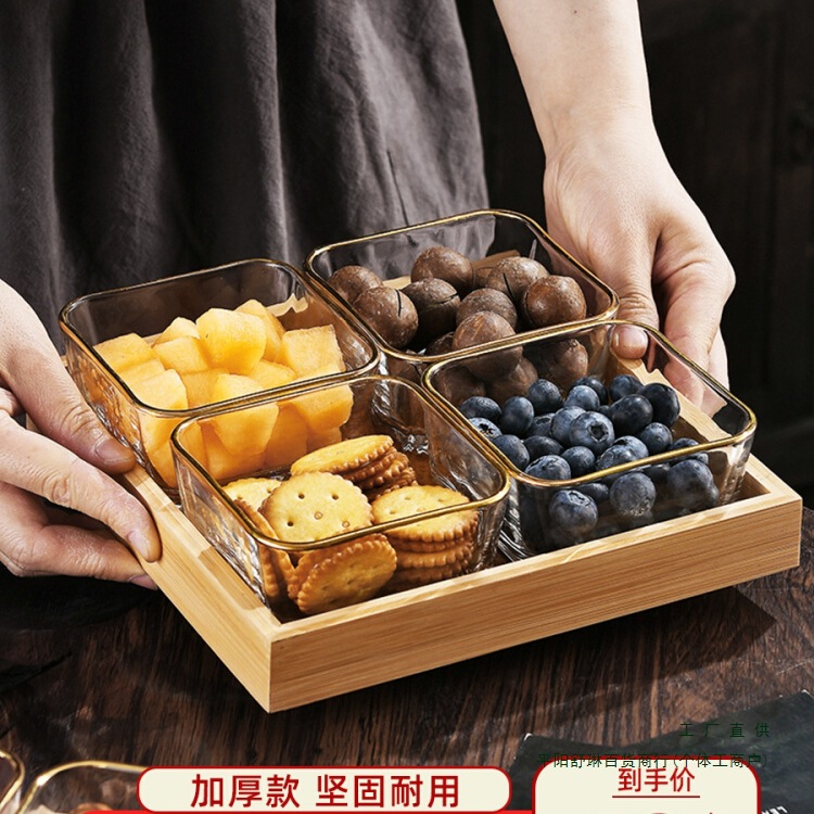 ガラスフルーツプレート、ホームリビングルームコーヒーテーブル、スナック、スナックディスプレイ、キャンディボックス、ナッツティーデザート、四角いドライフルーツプレート