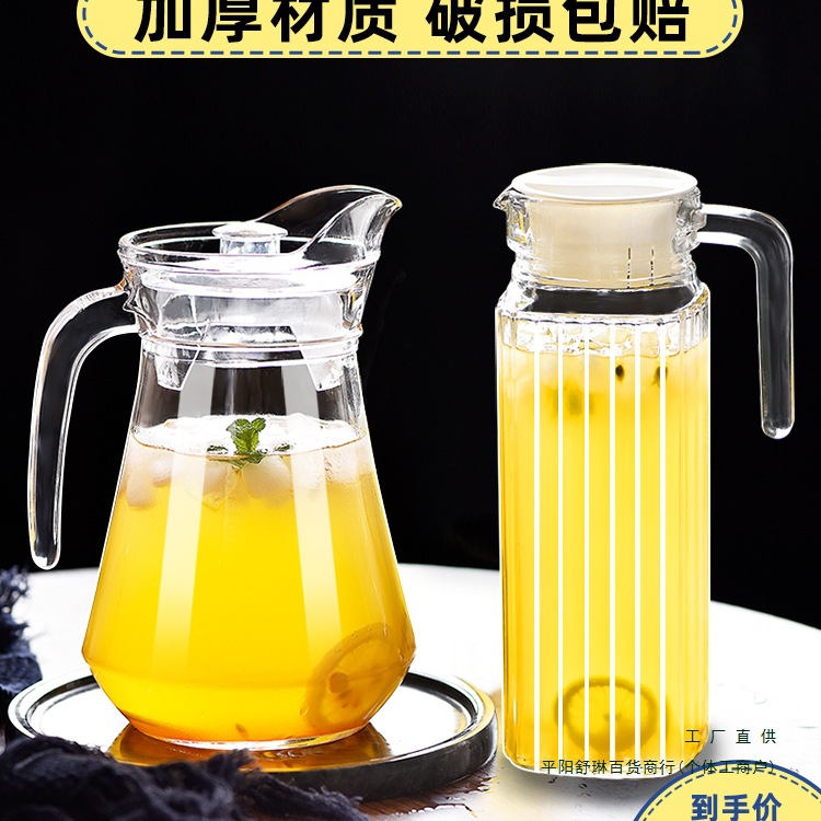 冷たい水筒ガラス水筒大容量ティーポット家庭用耐高温お湯カップジュース貯水ポット水筒