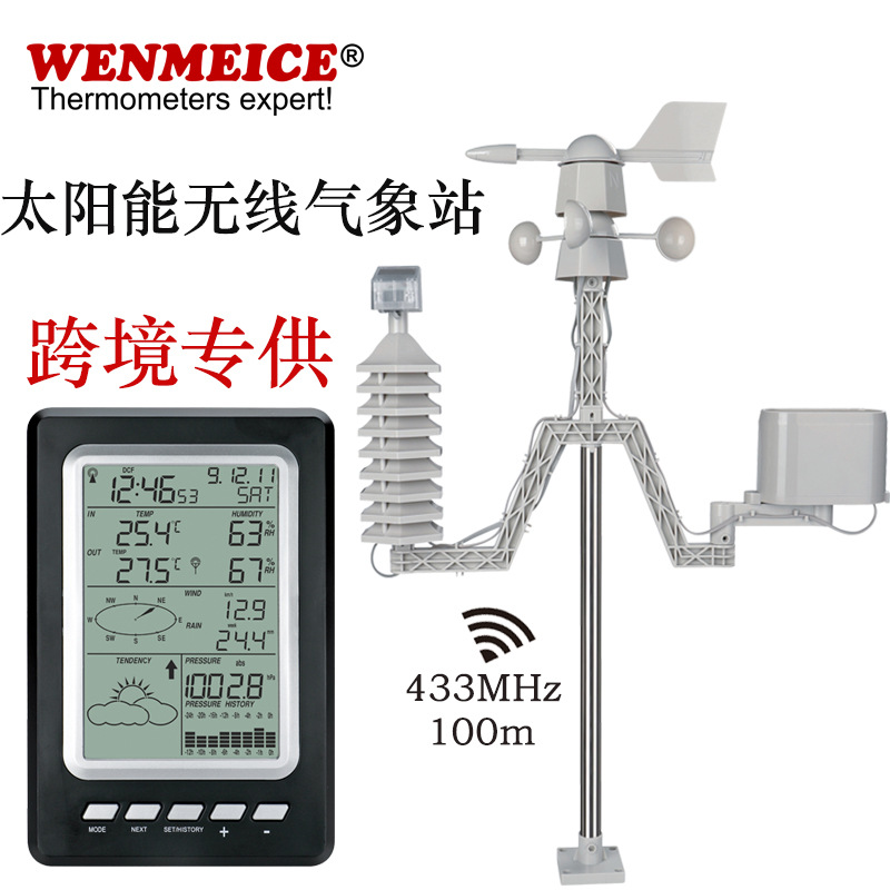 太陽光発電ワイヤレス家庭用気象観測所 大型画面屋内外温湿度計 家庭用小型天気予報装置 省エネ
