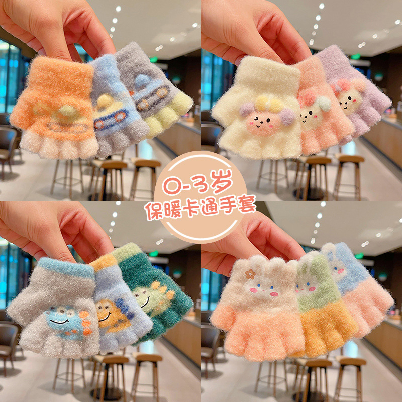 冬の新型赤ちゃんかわいいぬいぐるみ保温乳幼児手袋子供五本指セット0-3男女子供1歳2歳