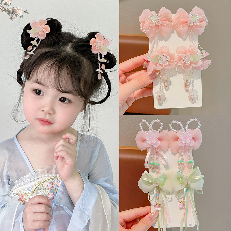 漢服の頭飾りの子供の古風な花の超仙の甘いヘアピンの女の子の髪飾りのフリンジの女の子のヘアピンのサイドクリップ