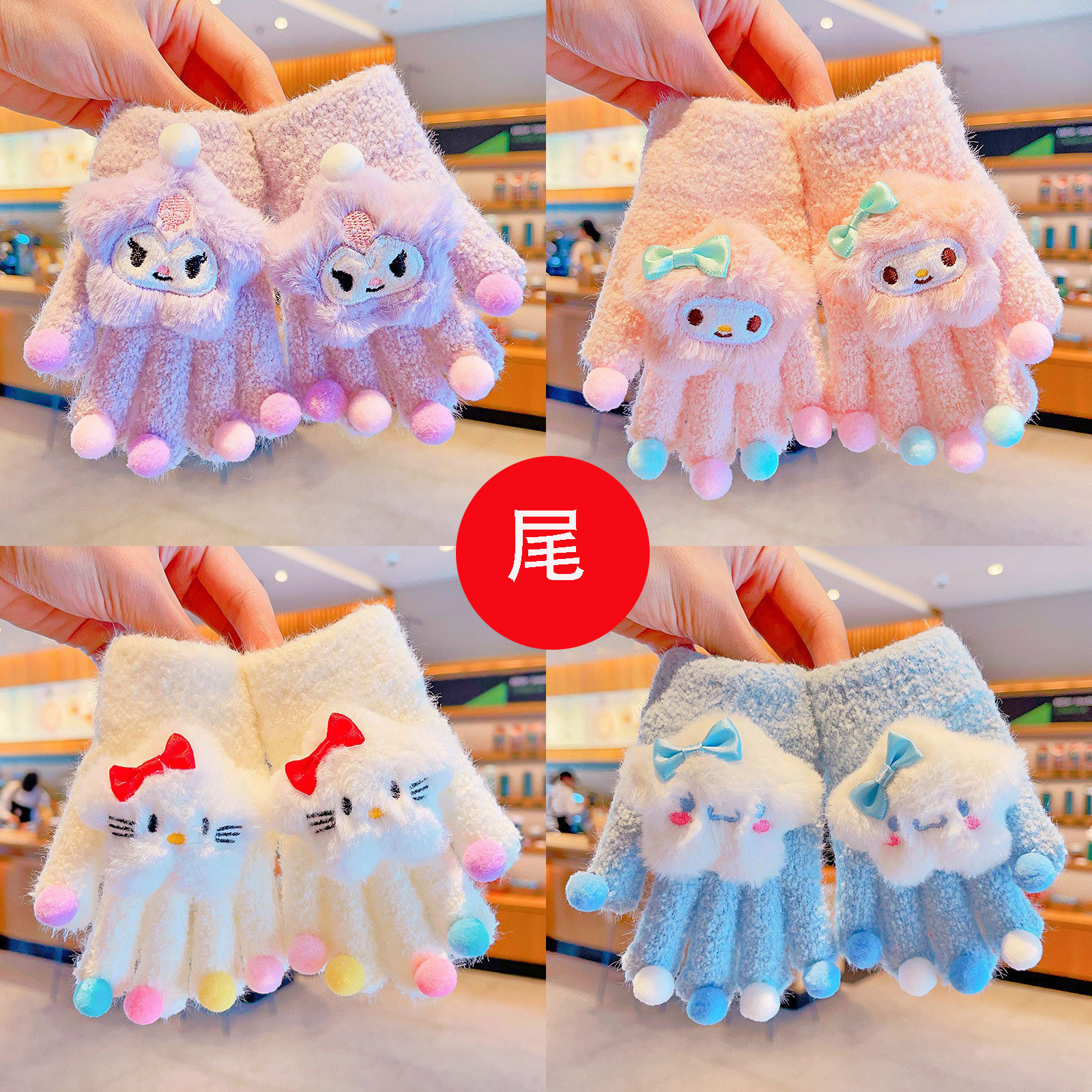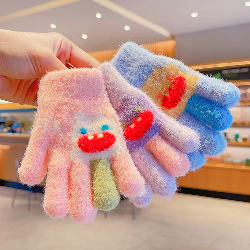 秋冬の新型の赤ちゃんのかわいい毛の保温の手袋の子供のベルベットの毛糸のニットの5本の指のカバーの0-3男女の子供