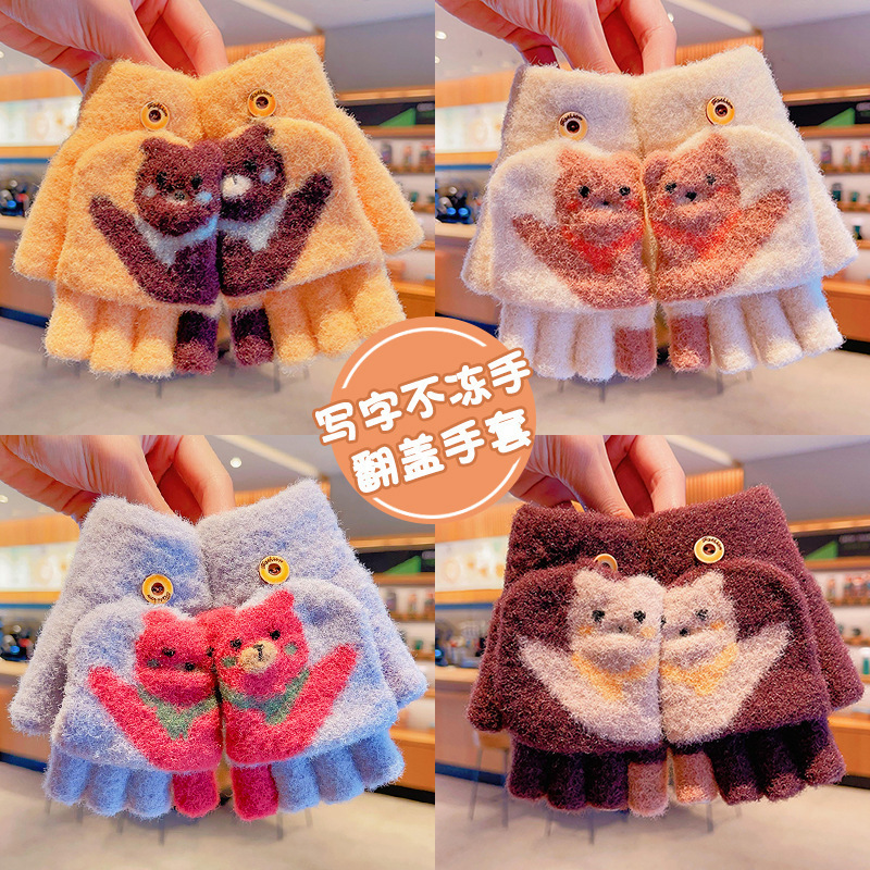 新しい子供の手袋秋冬の男女の子供の厚い保温は5本の指のかわいい子供の半分の指の毛糸の指のカバーを覆います。