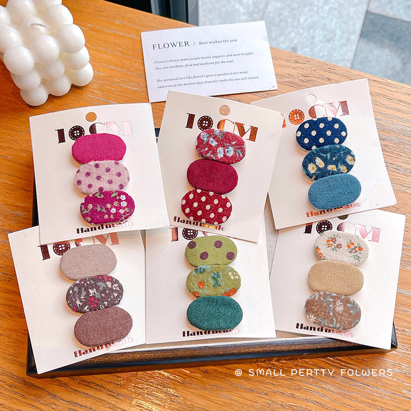 赤ちゃんの超小さいサイズのbbはかわいい布芸の女の子のサイドのヘアピンを挟みます。