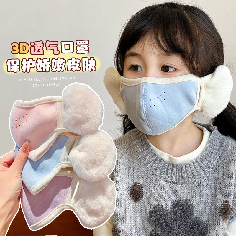 新しい冬の子供のマスクは、ぬいぐるみの防風耳を厚くしてかわいいアニメ保温耳二合一マスク