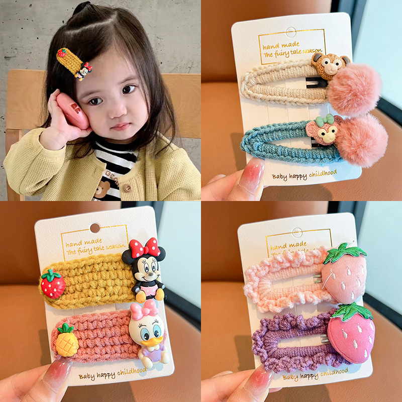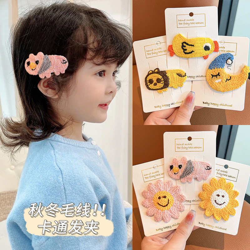 2023秋冬新作韓国版子供女の子ニット毛糸漫画ヘアクリップ赤ちゃん前髪クリップサイドクリップヘアアクセサリー