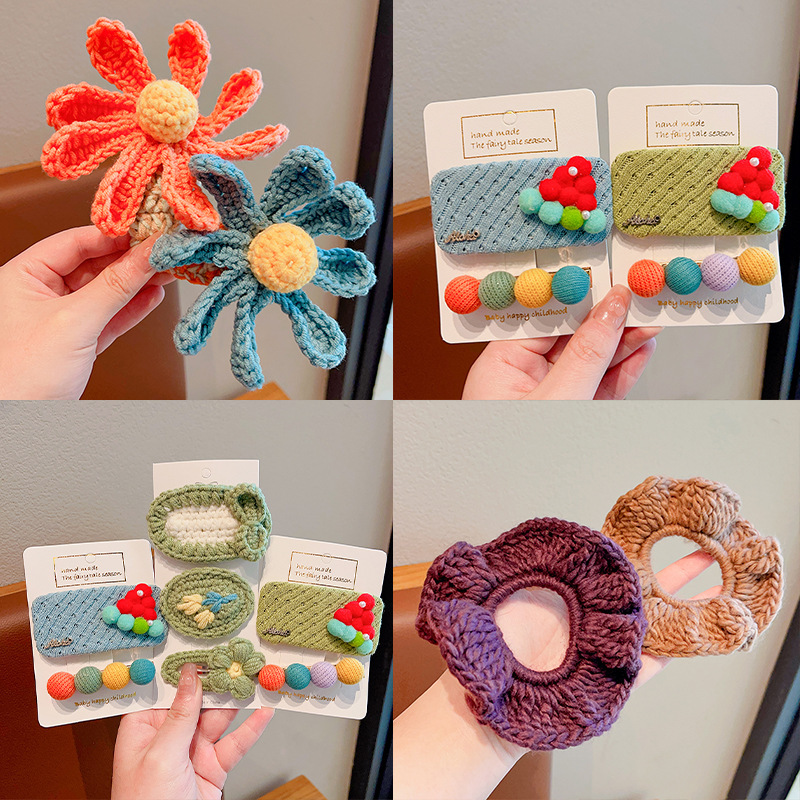 2023秋冬新作子供女の子ベビー毛糸ニットキャンディー色ヘアクリップセット女の子ヘアアクセサリー