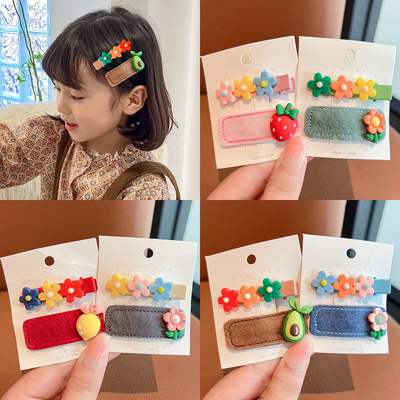 2023新型の爆発的な韓国版の女の子の花の果物のヘアピンの前髪のクリップの砕いたヘアピンは前髪のクリップを傷つけません。