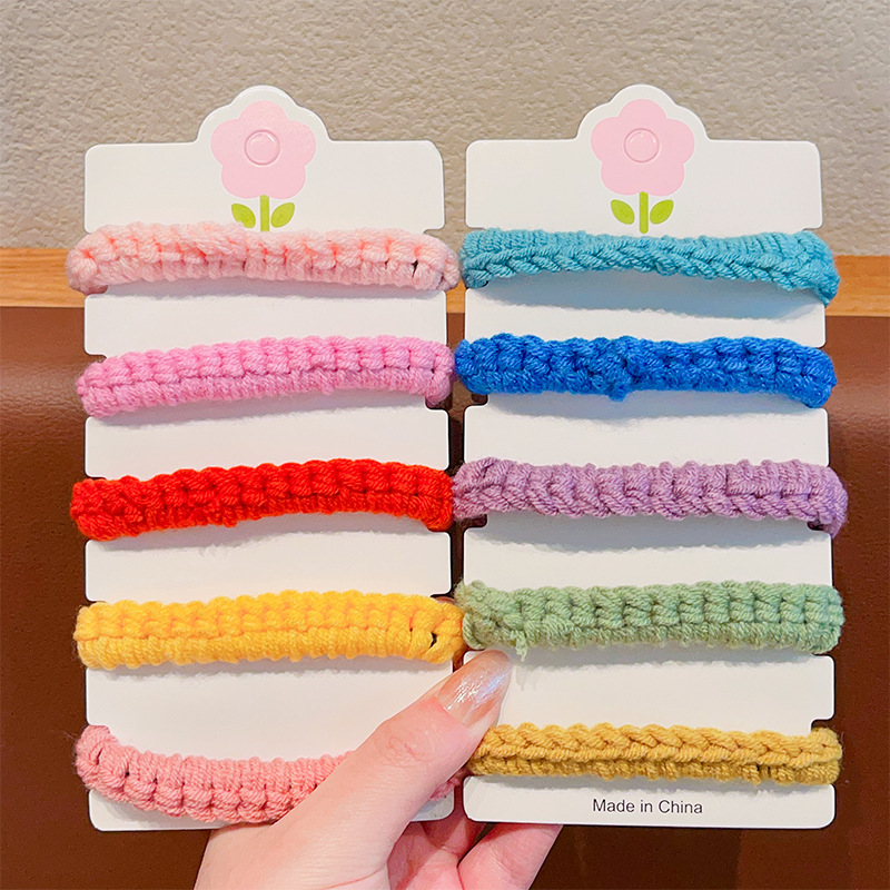 2023秋冬新型女の子赤ちゃんニット毛糸キャンディー色編み毛糸ヘアリング甘い少女髪