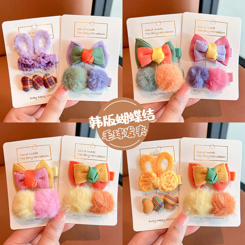 2023新型子供の女の子の韓国版の毛毛玉の蝶結びのヘアピンは髪の前髪を傷つけません。