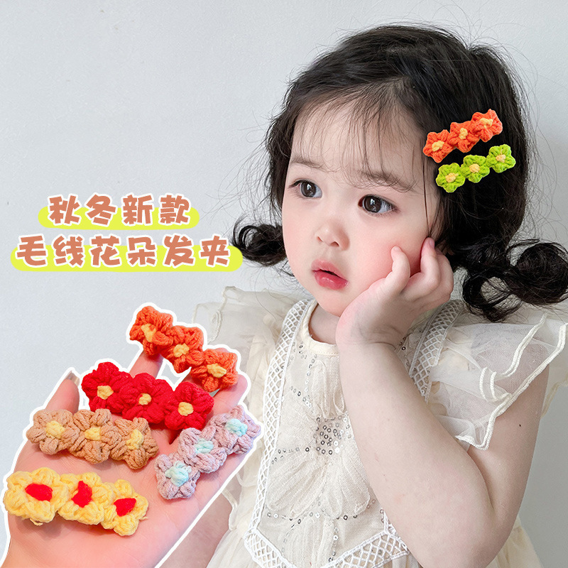 2023秋の新しい子供の女の子の毛糸の花のヘアピンの女の子の前髪クリップの花のかわいいクリップ